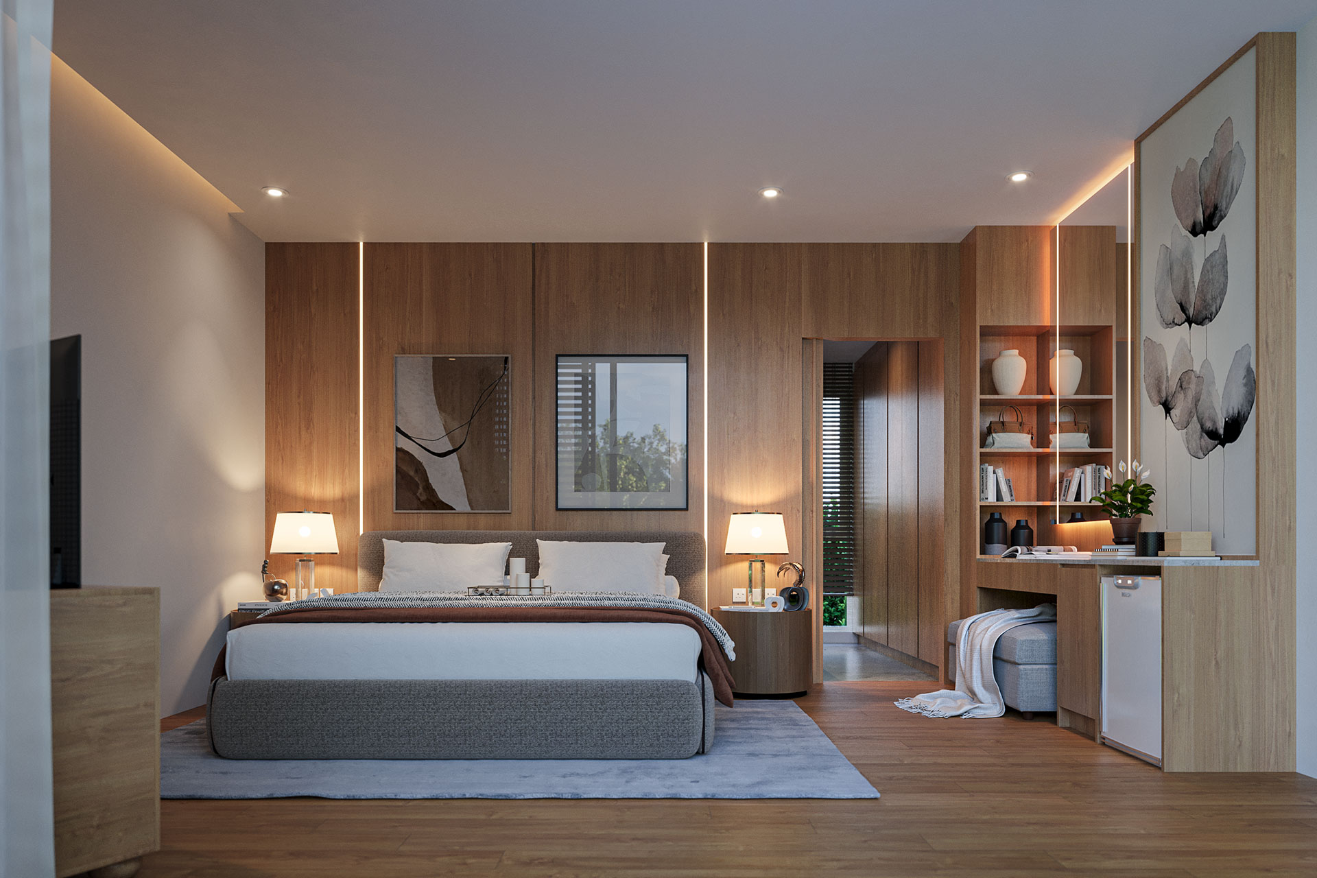Rich natural materials, including exquisite woods and stones, are expertly blended to fashion an unmatched aesthetic. Located mere minutes from the unspoiled shores of Naiyang Beach, this sanctuary is graced by lush pine trees, imparting a freshness to the air that is unparalleled in Phuket.